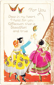 But, as I've said in the past, I still think this is a thing of beauty. The passage of time and the brownish stain have given this still-colorful (and butterfly-filled) postcard more character than it might otherwise have if it was in "mint" condition.